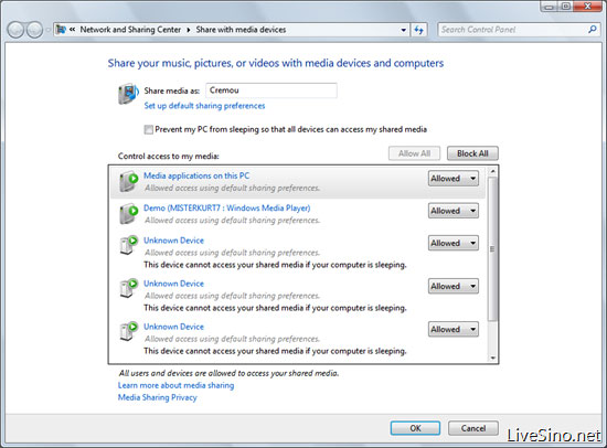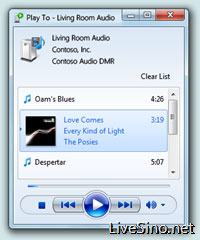 同样,Play To 也支持 Digital Living Network Alliance v1.5 设备,功能和上面介绍的类似,但如果该设备无法识别文件格式,WMP 会自动转码。