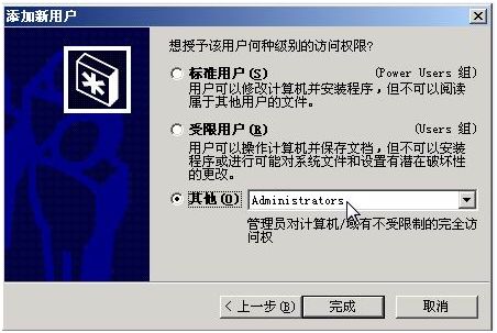 如果Windows开始变得不稳定,那可以试着打开“控制面板”,双击“用户和密码”项,在打开窗口中单击“添加”按钮,然后输入新用户名,如newuser。接下来,单击“下一步”,输入密码。同时,选择把该用户添加到Administrators组中。