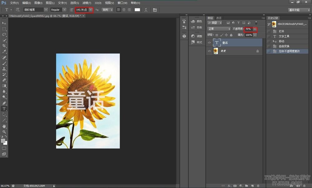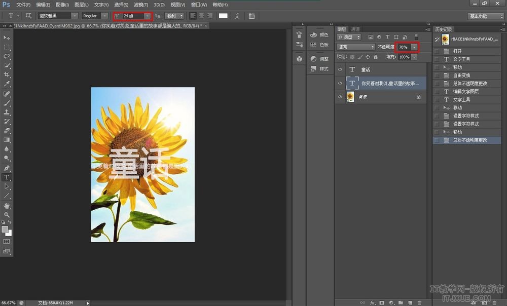 字号根据自己的喜爱程度大一点然后再Ctrl+t把他的高度变长一点,再把不透明度改成70%.