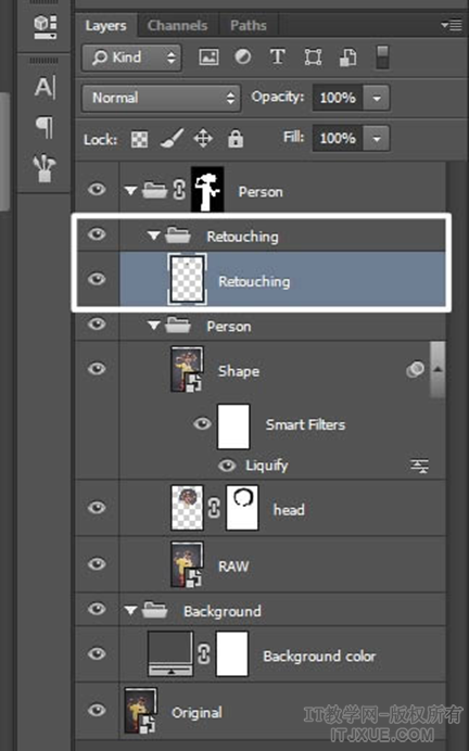 给它重命名为润色层吧(Retouching),要知道对图层的正确命名可以更快地找到它们。