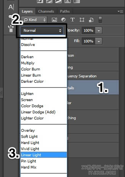 改变图层的叠加模式为线性光Linear Light