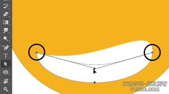 添加微笑的时刻来了。把左节点的上部端点移到嘴巴的中部底下,使之呈现出笑容。