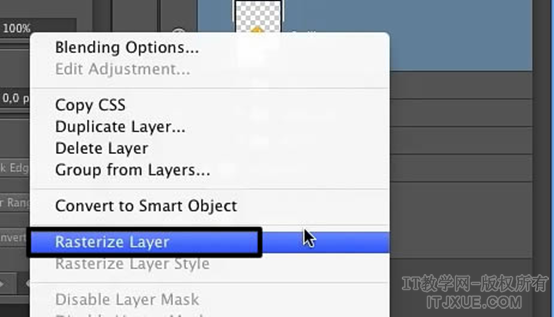 右击该图层,选择Rasterize Layer