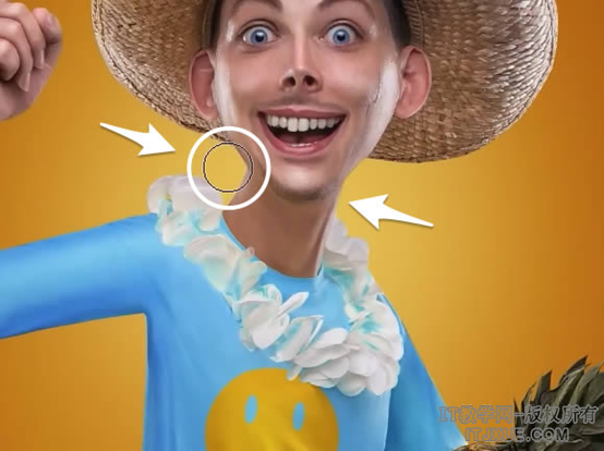 嗯,给这个图层命名为”light”,使用白色画笔工具,低不透明度(3%左右)给人物的脖子上光,创建一种光线照射的效果。