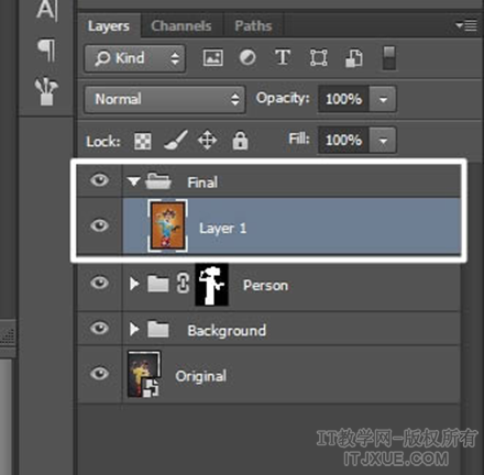 创建一个新组,命名为”Final”,CMD/CTRL + SHIFT + ALT + E盖印所有图层。