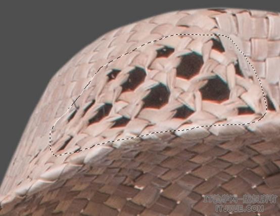 使用套索工具选择帽子上编织的柳条部分,按下ctrl+J复制一个新的图层