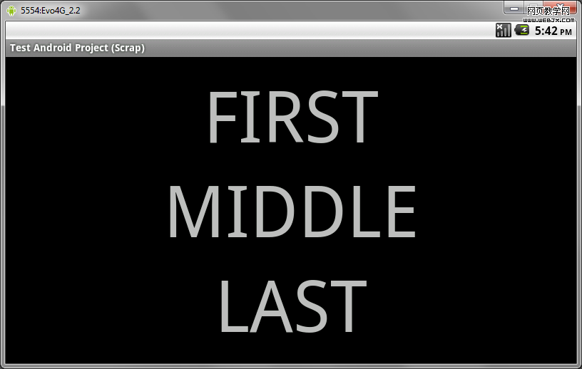 让我们更近一步地研究一下上面的Java代码。首先,创建并配置三个TextView控件。每个控件都有文本大小(字体大小),文本对齐,以及文本值本身。然后,创建一个垂直方向的线性布局。它的布局参数允许它填充整个父级对象(在这里就是整个屏幕),并且它的对齐导致所有子控件都排列在屏幕中间,而不是从左上角开始。每个TextView控件通过addView方法作为子控件添加到线性布局中。最后,当父级控件要在屏幕上显示时,线性布局被传到setContentView()方法中。