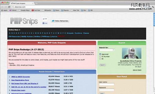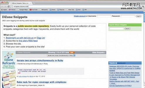 网站开发资源:WEBJX收集13个提供代码示例的国外网站