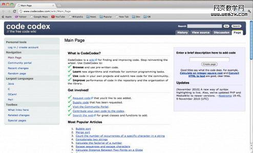 Code Codex是程序世界的Wiki。在这里,用户可以浏览、使用别人提交的优秀的代码;学到新的编程算法;提高社区里程序的性能。