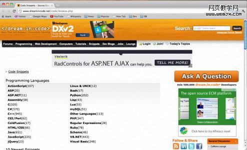 网站开发资源:WEBJX收集13个提供代码示例的国外网站(2)