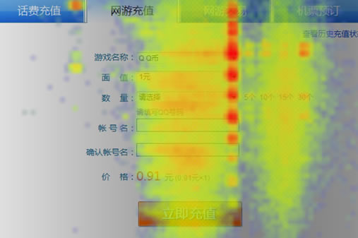 2. 热力图同时还能告诉你,页面的哪些部分吸引了大多数用户的注意。这对那些对web分析数据没有很多经验的产品人员非常有用。