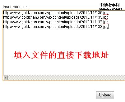 在对话框中填入绝对下载地址,能一次性填入200个,再点击Upload。OK,这样子就好了,服务器会自动上传的,你只要挂机在那边就可以了,就相当于开了个迅雷在那边下载一样,且这个还比迅雷自动化,就算你关掉了,它还是帮你在下载。简单吧,远程上传就先介绍到这边了。