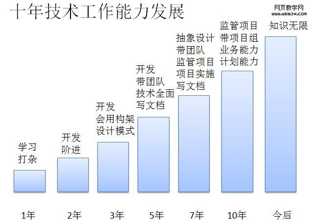 根据技术能力的发展,在公司里一般有过十年工作经验的人,差不多都经历了这些职位,职位只能证明你能力的位置,你发展到什么样,如果是找工作,你得将自己定在什么样的位置,可以参考一下,不过每个人的规划不同,如果是和我画的图差不多,那就得改变一下自己的心态了。