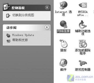 Step1:在“开始”菜单选择“控制面板”,然后进入“网络和Internet连接”分类下的“网络连接”(如图1)。