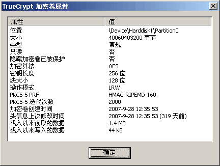大家可以看到我的加密卷的信息.1年前创建的.每次加载以后读取写入多少数据都有统计.