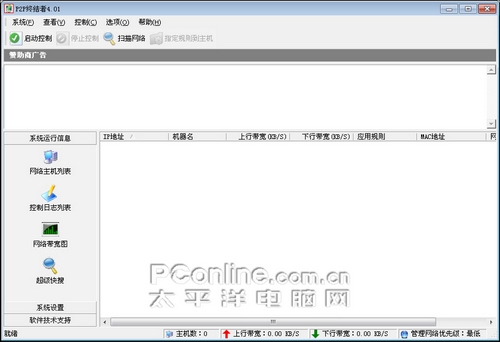 进入主界面,你只需要点击“启动控制”按钮,那么局域网内所有主机的接入互联网带宽都尽在掌握中了。