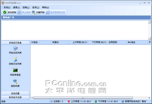P2P终结者是一款局域网流量管理软件,只需要在局域网中任意一台电脑上安装后就可以可控制整个局域网的流量,还可以限制局域网中任意用户的进行网页浏览及QQ聊天及使用各种下载软件。在之前的版本中,P2P终结者是收费的,从3.X的某个版本开始免费提供给家庭用户使用,最近推出了4.01版本,来看看新版给我们带来了那些新功能。