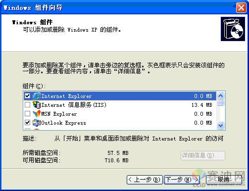 1.IIS:微软的互联网信息服务(IIS)提供了将用户的计算机变成一个Web服务器的能力。这项服务可以通过以下方法关闭之:打开“控制面板”,找到“添加或删除程序”,单击“添加/删除Windows组件”,取消选择“Internet信息服务(IIS)”即可。如图: