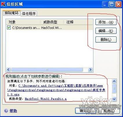 第六步、出现信任区域对话框后,选择需要排除的文件,点击“确定”按钮。
