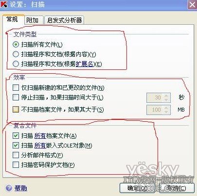 第四步、对于特殊文件,比如大型压缩包,大型数据库文件,需要进行排除扫描,或是时间扫描的,请按照下面的界面进行实际情况设置。