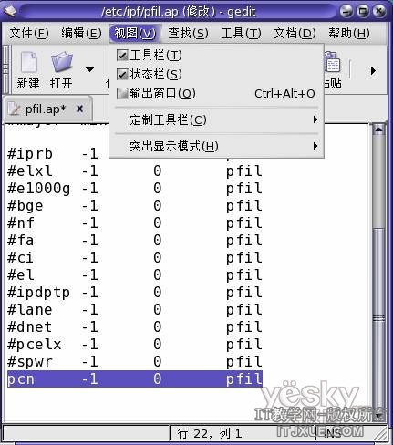 此文件包含主机上网络接口卡 (network interface card, NIC) 的名称。缺省情况下,这些名称已被注释掉。对传输要过滤的网络通信流量的设备名称取消注释。编辑配置文件修改为如下内容: