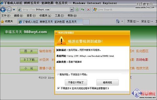 我们不禁要问,为什么“搜索一下,你就知道”的安全隐患会如此严重?这个,除了搜索引擎自身的漏洞缺陷之外,黑客对于搜索引擎优化技术的透彻理解,也起到推动作用。黑客搜集普通但是搜索率高的关键词条(如免费音乐、BT下载、聊天、交友、壁纸、同城等)大量上传含有这些词条的恶意软件或网站,抑或将含有病毒链接的信息发布到博客留言、评论或者BBS,努力提高搜索结果的在页面上排名,比较成功的案例是含有病虫害的页面高调上升至搜索引擎首页,那么那些包括危险下载、诈骗和危险的链接便被毫不设防的你轻松点击。