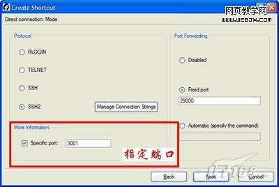蠕虫僵尸可通过这些远程连接的默认端口侵入,如通过HTTP Web 访问的80或8080端口、加密Web访问的443端口、SSH的22号端口等。因此,一台在非默认端口上接收连接的路由器更为安全。很多路由器在紧挨着远程连接设置功能的位置有一个端口(Port)字段,在此输入想要使用的端口号码。例如,键入路由器所在位置的面向互联网的IP地址,加上一个冒号,然后是端口号。如果是通过SSH进行连接,你需要在SSH客户端程序的连接设置中指定端口号。如下图3所示: