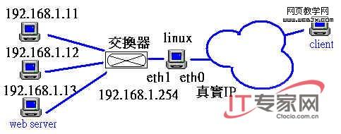 网卡1 : eth0 , 使用真实IP , 网卡2 : eth1 , 使用 192.168.1.254