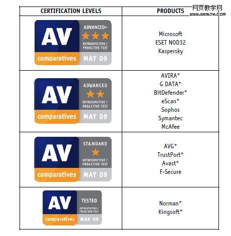 5月AV-Comparatives全球知名杀软评测结果揭晓,金山再次上榜。