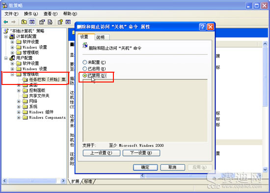 通过注册表限制用户关闭计算机: