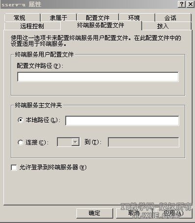 从“终端服务配置文件”选项里取消“允许登录到终端服务器(W)”的选择,然后点击确定继续我们的设置。(见图10)