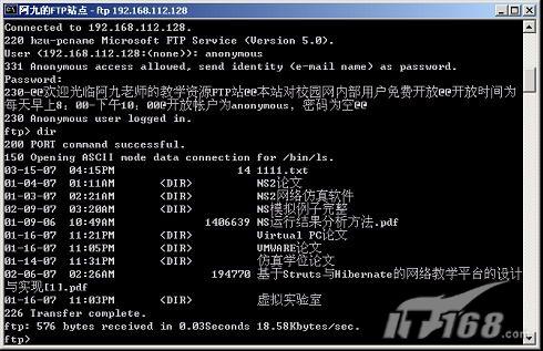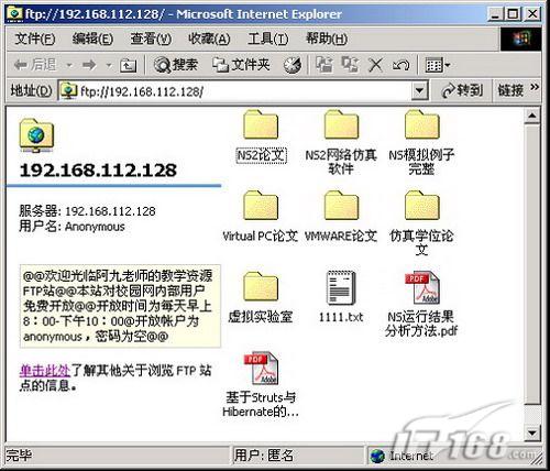 4. 通过IE来验证或者获取FTP服务,在IE的地址栏中输入“ftp://192.168.112.128/”如图14
