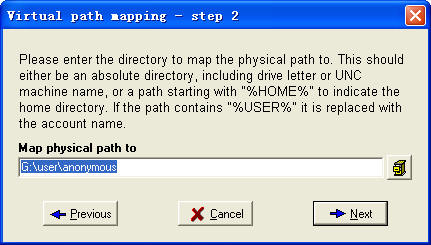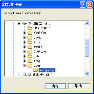 输入映射到哪个目录,一般为用户主目录(这里是g:\user\anonymous),当然视具体情况而定。