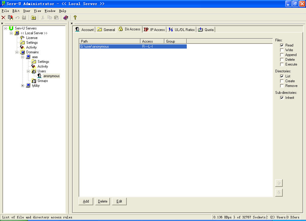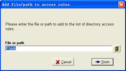 如图,在Dir Access里add,输入权限目录,即刚才所要开放的目录,这儿为f:\pub