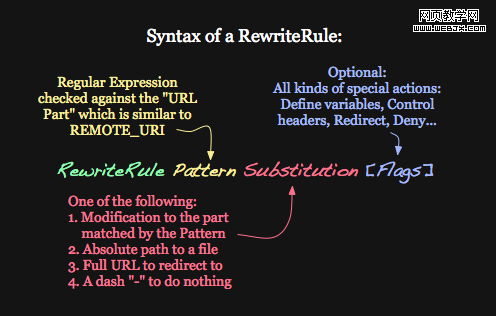 让我们从重写规则开始。如果你想做一些特殊的事,你可以随时查看Apache的关于重写规则的文档。下面是我的概述:
