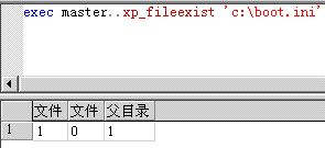 exec master..xp_fileexist 'c:\boot.ini'
