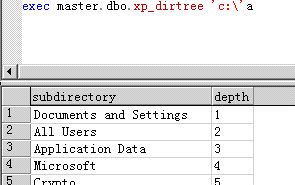 exec master.dbo.xp_dirtree 'c:\'