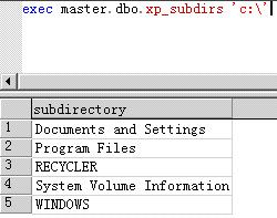 exec master.dbo.xp_subdirs 'c:\'
