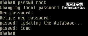 安装完系统首要就是设定密码,方式如下: 透过 passwd 这个指令 指定改变密码的账号是 root 。 当然也可以透过这种方式指定其余账号。 更改密码时,会要求你输入两次 * 同样的新密码 * ,以确认你不会不小心输入错误。