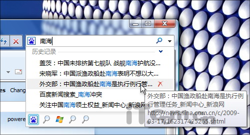 【小提示】 此外IE8的搜索栏,也支持历史记录匹配,这一点和地址栏完全一样。