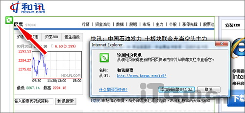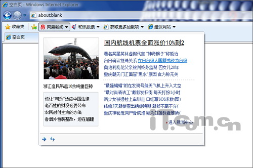 很多朋友都有这样的经历,工作时要时常关注很多信息,如实时股票数据、网店竞拍价格、当天实时天气等。可如果经常在这些网页中来回穿梭,不但非常麻烦,而且也会对自己的工作效率造成不小影响。而IE8中新增加的网页快讯,正是为了这个问题而设。使用时,只需打开一个支持网页快讯的网站页面。然后将鼠标悬停于感兴趣的版块之上。这时,再点击左上角弹出的网页快讯图标,就可以将该版块成功添加到收藏夹栏。这样,我们只要在自己需要时,点击一下收藏夹栏,便能马上看到当前领域所显示的最新内容了。