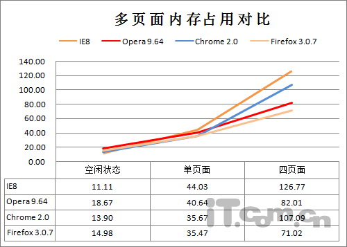 图33 多页面内存占用对比(数值越小越好↓)