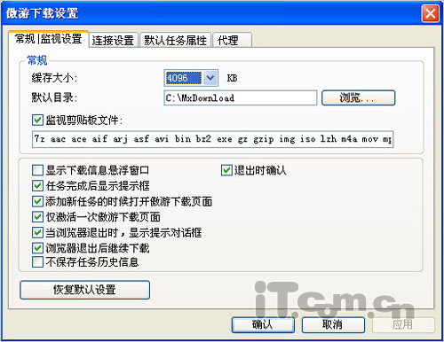 在傲游2中选择“工具——傲游设置中心”,然后点击“文件下载”项,在下载管理器设置中选择“傲游下载”(如图1)。点击其后的“设置”链接可以打开下载设置窗口,这个设置窗口是不是似曾相识?呵呵,没错,这个类似老快车的下载设置窗口简洁的全释了下载设置的各个方面(如图2),我们在“常规 监视设置”中将“监视剪贴板文件”勾选上,这样当你在网上复制了一个下载地址,傲游下载即可弹出下载任务窗口方便你下载;如果你习惯了下载软件的任务悬浮小窗口的话,那么可以将“显示下载信息悬浮窗口”也勾选上,这时在窗口右下角就会出现傲游下载的悬浮窗口方便你对下载任务的操作。关于其他设置我们就不一一详述了,基本上和下载软件差不多,大家可以按需设置。