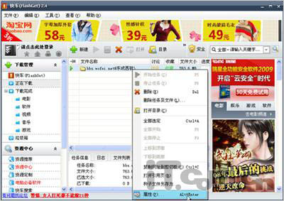 首先,右键单击无法下载的资源任务名,从快捷菜单中选择“属性”命令进入任务配置对话框。如图01所示。