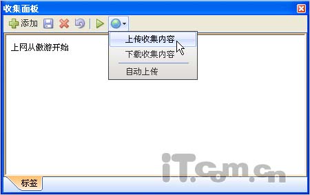 同时,在最新版本的傲游浏览器中,收集面板中的内容还支持轻松同步到服务器中。和在线收藏功能相同,用户在使用傲游账户登录之后,即可轻松享受到这项功能。确定当前内容需要进行同步之后,点击收集面板的“地球”形状图标(如图8),在弹出的菜单中即可看到“上传收集内容”选项,点击即可轻松将收集面板内容上传到服务器中。在异地需要调用时候,同样在此菜单中选择“下载收集内容”即可重新进行调用。