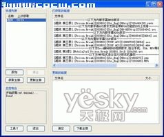VC资源更新器是一款绿色工具,下载完毕解压后即可直接使用。打开软件主界面后,单击“添加”按钮,在弹出的对话框中分别输入需要探测的“资源名称”和“资源地址”,然后分别输入想要显示的名称和想要获取资源的地址,我们这里以《越狱》为例,输入“越狱”,再填入《越狱》在VeryCD网站上的地址:http://lib.verycd.com/2007/09/18/0000163786.html,这样就完成了一个监控资源的添加。添加完资源后,在资源上点右键选择“获取”,程序会读得该资源的全部ed2k链接地址,显示在右上方列表中,在需要下载的集数上右键单击下载即可启动电驴进行下载了(图6)。