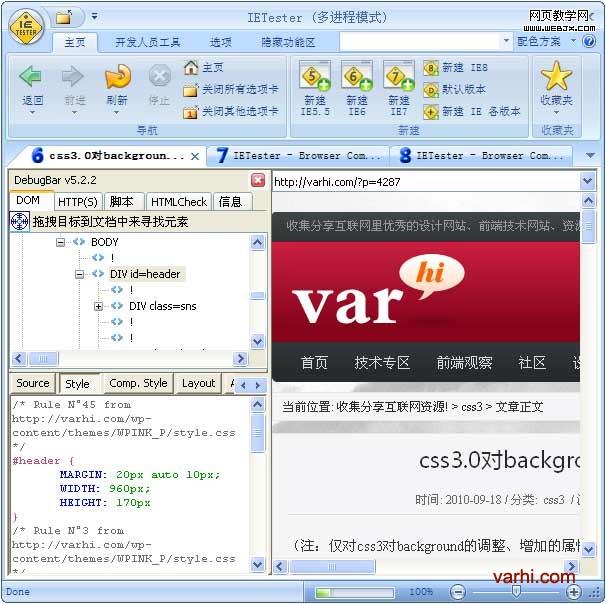 其实IETester之前是做IE的网页开发插件DebugBar的。后来,发现IETester更有搞头,所以,现在就全力发展IETester了。当 然,IETester也整合了这个开发人员插件DebugBar。这个DebugBar虽然相比firebug一类的神器插件,还有几分逊色,但是在 IETester中能使用这样的插件已经是一件非常令人开心的事情了。所以,推荐大家在使用IETester的同时把DebugBar也安装上吧。