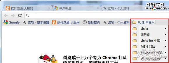 Chrome浏览器书签栏右边显示导入的IE收藏夹数据