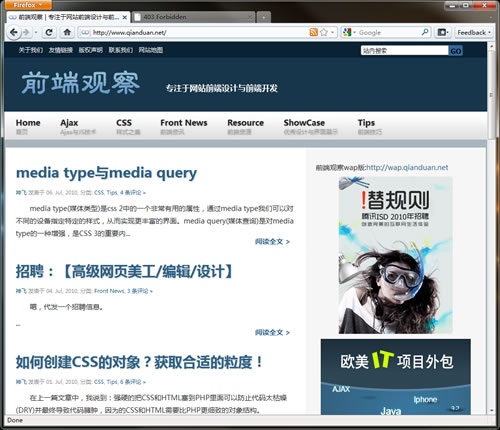 在Mozilla发布几个Firefox 3.7 preview版本之后,今天终于发布了Firefox 4 beta 1,在这个硝烟愈来愈浓的浏览器战场,Firefox 4的发布让情况更加复杂了。现在让我们来看看Firefox 4的改进和对前端开发的影响吧。
