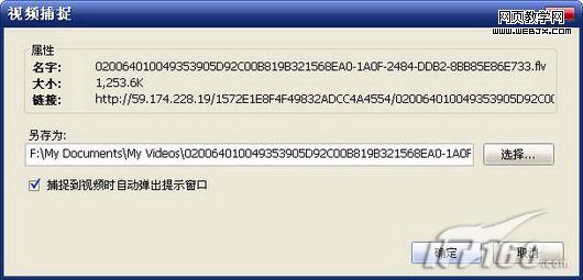 如果需要保存视频,用户直接点击“确定”按钮即可实现下载,非常方便。当然,每次有视频都弹出一个大大的对话框挺烦,你可以取消勾选“捕捉到视频时自动弹出提示窗口”的选项。